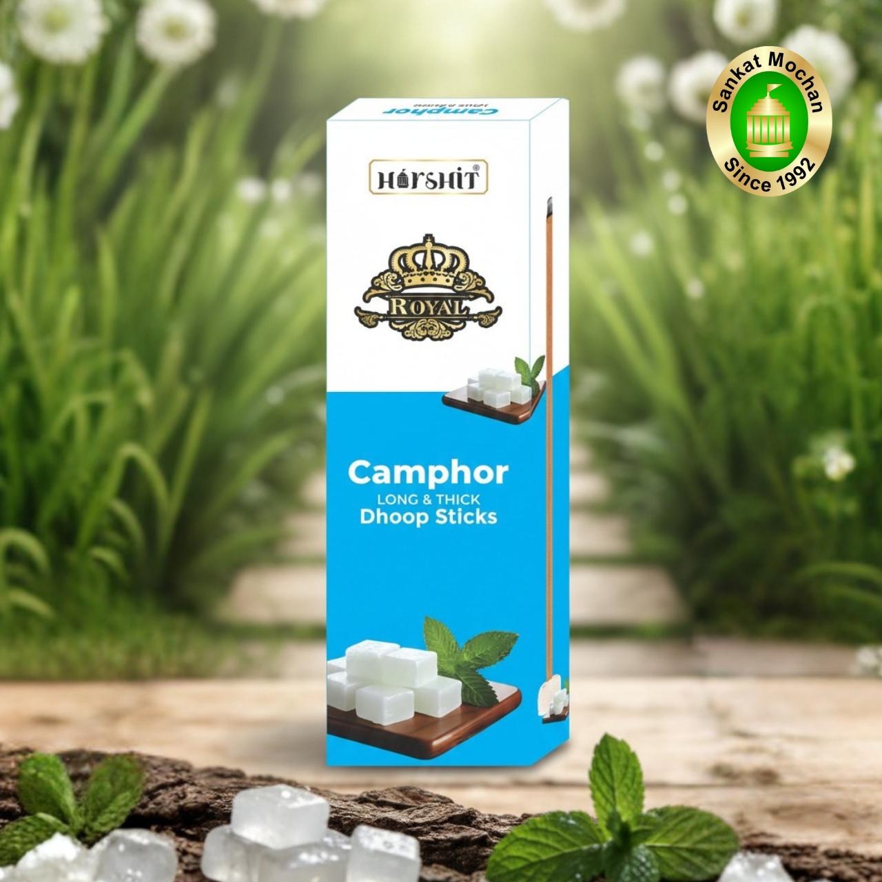 Harshit Royal Camphor Dhoop Sticks are crafted with a fresh and purifying camphor fragrance that helps cleanse the surroundings and uplift the mind. These long and thick dhoop sticks burn evenly, releasing a cool and soothing aroma that is ideal for pooja, aarti, meditation, and daily spiritual practices. Perfect for creating a pure and positive environment.