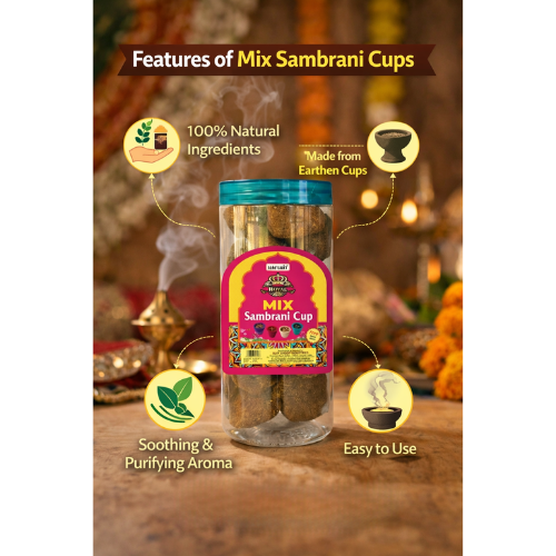 Apne ghar aur mandir ke vatavaran ko aur bhi pavitra aur sugandhit banayein Harshit Royal Mix Sambrani Cups ke saath. Premium quality sambrani se bane yeh ready-to-burn cups ek rich aur traditional fragrance dete hain jo pooja, havan aur festive occasions ke liye bilkul perfect hain. Mix fragrance ka anokha combination har jalne par divine aur soothing mahaul create karta hai. Convenient jar packing ke saath yeh use karne me aasaan aur safe hain.